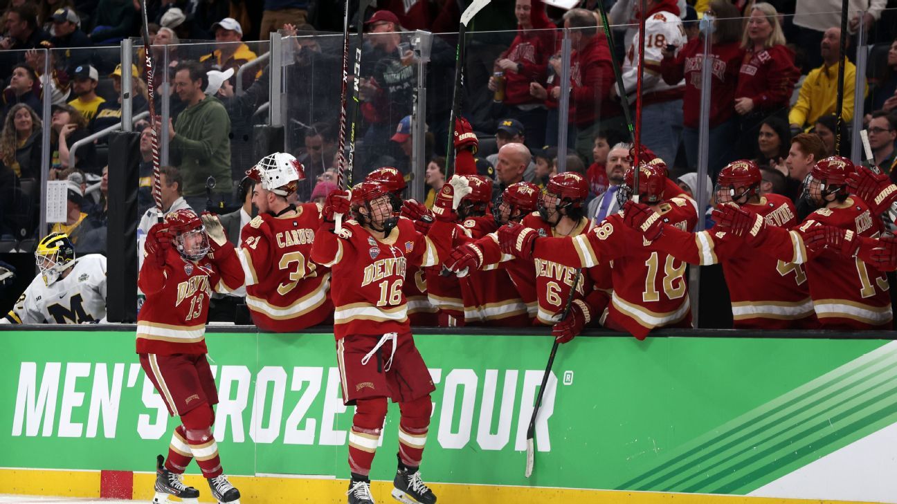 تغلب دنفر بايونيرز على ميتشيجان ولفرينز 3-2 في زمن إضافي للتقدم إلى نهائي Frozen Four
