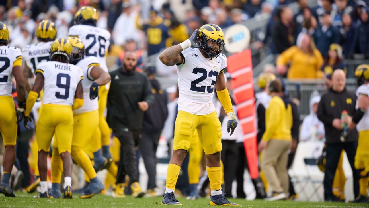 بعد يوم واحد من إعلان Big Ten أنه سيتم إيقاف مدرب ميتشيغان جيم هاربو عن التدريب على أرض الملعب لبقية الموسم العادي، وجدت ميشيغان طريقة لهزيمة ولاية بنسلفانيا، 24-15، على الطريق.