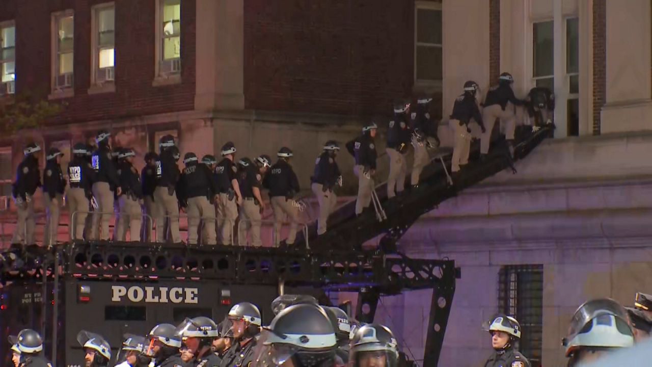 وأظهر مقطع فيديو تم بثه على الهواء مباشرة على قناة NY1 الضباط وهم يدخلون قاعة هاميلتون في كولومبيا من خلال نافذة باستخدام سلم متصل بسيارة الشرطة.